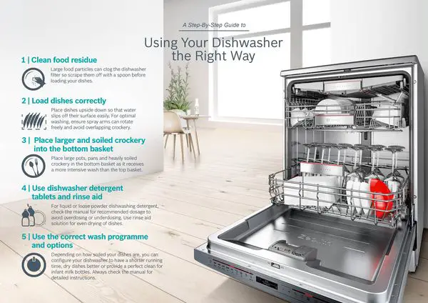 – Monthly deep clean with Bosch Dishwasher Cleaner