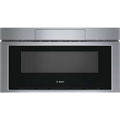 If the unit is a speed oven or microwave drawer, the door action can differ. But most Bosch countertop and built-in microwaves use pull or button styles.